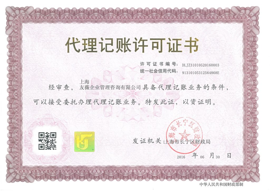 账户:上海友薇企业管理咨询有限公司